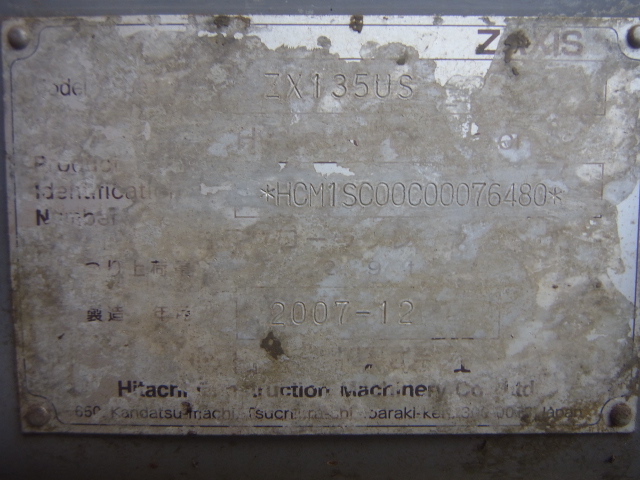 HITACHI ZX135US メーカーHITACHI モデル/型式ZX135US シリアルNo.76480 年式2007-12 アワーメーター6857Hr 価格お問い合わせ 備考 0.45㎥ Hook 45t、Ball クレーン仕様